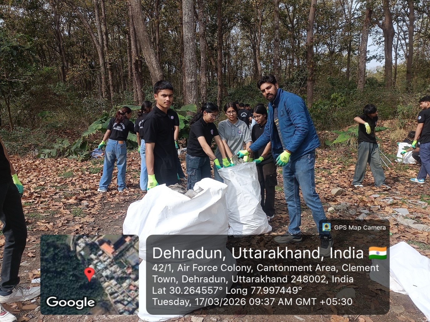 EIACP RP FRI, Dehradun with Waste Warrior NGO for a Clean-up Drive and Community Awareness Campaign under Mission LiFE Program on 17th March 2026 at 8:30 AM at Bell Road, Prakriti Vihar, Clement Town, Dehradun (near Buddha Temple). Total 450 participants including NSS Volunteers, community members and local residents were engaged to promote responsible waste disposal and environmental care. The initiative was supported by the Cantonment Board, Clement Town and the Forest Department.